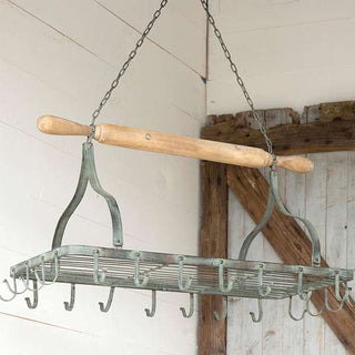 Our hanging pot rack frees up space in your cupboards and turns your pots and pans into an artful display. The rolling bing across the center is such a unique touch that will be seen and admired by all your guests. We simply LOVE this piece for all its amazing uses!