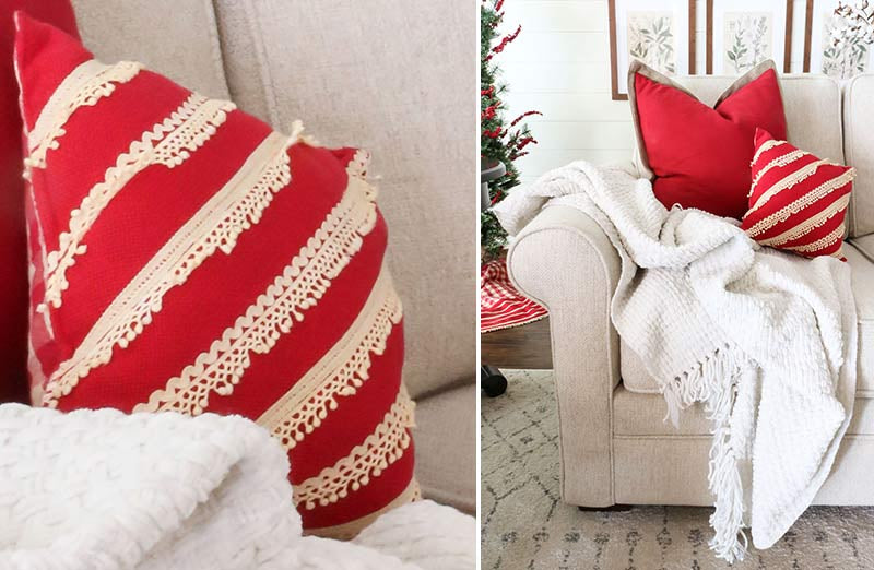 The versatility of this throw pillow makes it an easy choice to add to your Christmas decor! From farmhouse to vintage we know it will look perfect for your personal style! We adore how much this pillow reminds us of a candy cane! Who doesn't LOVE candy!!!