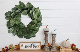 Simply GORGEOUS! What could possibly be prettier and more real than decorating your space with natural inspired pieces with a farmhouse feel. This magnolia wreath has been seen all over home decorating shows and has captured us with its beauty! It's that staple piece that every farmhouse needs! We LOVE LOVE LOVE how farmhouse fresh and simplistic these wreaths are! Dress them up or leave them as is for the perfect addition to your spaces! These beautiful magnolia wreaths are sure to make a fresh & natural addition to your home. They will surround you with natural texture and purity.