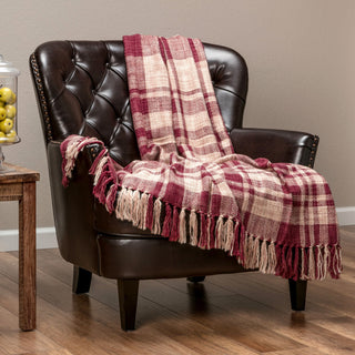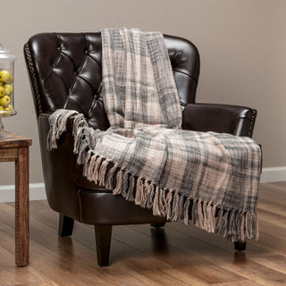 Both the front and back of the blanket feature a textured knit woven plaid design with fringed tassels. Great for windy evenings outdoors, movie nights with the family or as a quick solution for a chilly office space. The lightweight fabric and tactile texture also make it the perfect for your little one’s nursery!