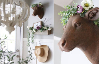 Can we get an E – I – E – I – O - O – OOOOH?!!! Oh man! We couldn't be more excited! We've brought you this famous, very popular and constantly requested Farmhouse Style Cow Head Wall Mount before and we sold out in NO TIME! We are very happy we were able to bring a few back, so ARE YOU READY??? Quickly before they are all gone AGAIN! Soooooo exciting! Today we bring you the Mounted Cow Head that was a Miss Mustard Seed's Pick (August - 2012)! We just LOVE Cow Heads and really any cow decor!!! ~Sigh You can name her 'Bessie' or you can name her 'Flossie' but you won’t be able to call her anything if you don’t act fast! YUP, this cow has been so popular and had made a statement piece in so many of your homes. (It's nice to put yourself on the top of your shopping list every now and then!) Oh man, you MUST see the Pinterest board we put together for this cow...Every time we bring this cow head it sells out so quickly. Today is your chance to get your hands on this famous cow that everyone is talking about! PS: Check out how our Instagram friends are using their cow head: @idreamofhomemaking, @littlehouseonbigcove, @myfarmhousegrounds, @simplyciani, @farmhouseoncolonial, @savvysouthernstyle, @the.white.hydrangea.co, @teresazilinskyhomes, @charmingimperfection Enjoy!