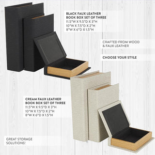 Add a touch of elegance to your home decor while keeping your valuables hidden in style with this Faux Leather Book Box Set of 3. Available in sleek black or classic cream, these book boxes are perfect for blending seamlessly into your decor while serving as a clever storage solution.