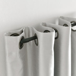 Metal grommets make installing these curtains a breeze. They'll easily slide right onto your curtain rod. The metal grommets have a 1.6" diameter opening and are gun metal color.