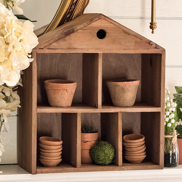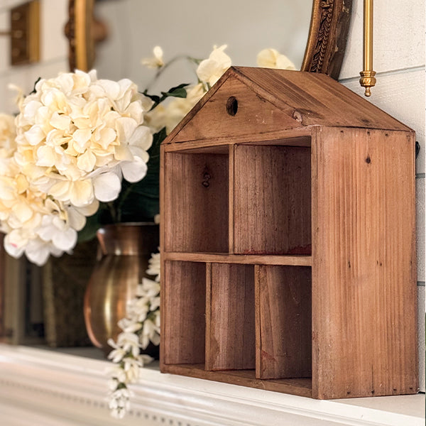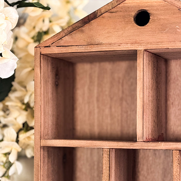 Imagine bringing a charming little house right into your living space! Our Five Cubby Wood Wall Shelf isn't just functional storage—it's architectural whimsy for your walls. This house-shaped shelf creates a delightful "home within your home" where your most treasured items can take up residence.