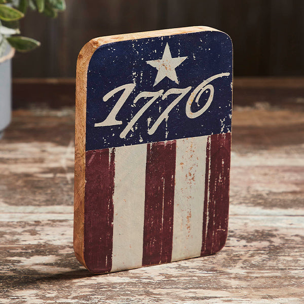 Showcase your patriotism with our "1776 Flag Stripes Wooden Tabletop Sign." This beautifully crafted sign features bold flag stripes and the iconic year 1776, making it an ideal decorative piece for celebrating American heritage and adding a touch of history to your home decor.