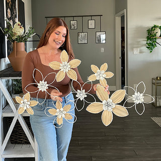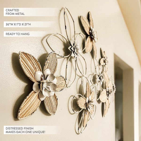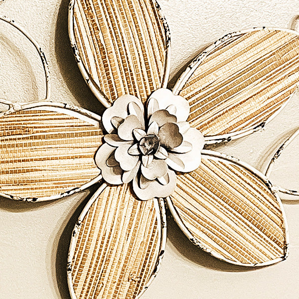 - Layered Floral Design – Each flower features metal petals shaped and layered for depth, while the outer petals showcase a woven texture that adds dimension and charm.