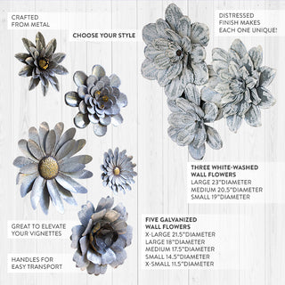 - Galvanized Metal Set of 5: Opt for a set of five galvanized metal flowers, adding an industrial-chic vibe to your decor.