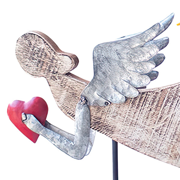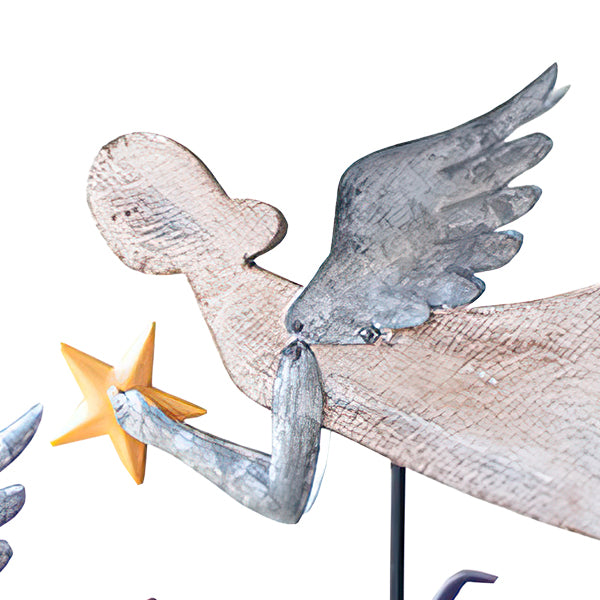 Elevate your holiday decor with our Wood and Metal Flying Angels, Set of 2. These beautifully crafted angels combine rustic wood and elegant metal accents, creating a harmonious blend of materials that bring a touch of celestial charm to any space.