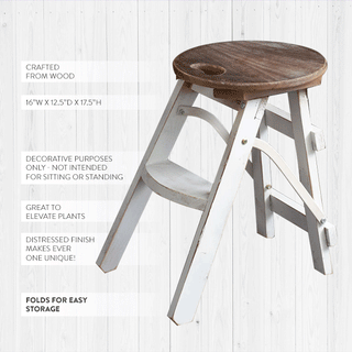 This Folding Farmhouse Stool Plant Stand will be PERFECT for any potted plant or even to hold candles and picture frames! Simply set this on any table top, near your mantel or even covered porch and you will add so much desired height to anything you want! This stool riser even looks great on its own or even as a side table! It will be the perfect accent piece and is a fraction of the price of a true antique!