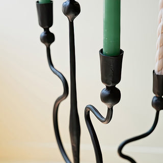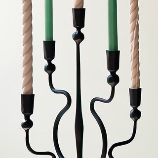 Create an unforgettable ambiance with the timeless beauty of our Forged Iron Five Taper Candelabra. This stunning centerpiece exudes elegance and craftsmanship, featuring a gracefully curved design that holds five taper candles. Whether for a formal dinner, romantic evening, or everyday decor, this candelabra adds a touch of sophistication to any space.