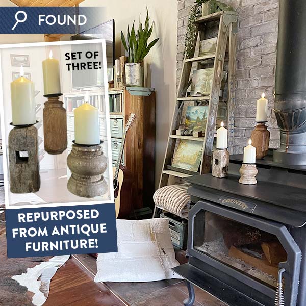 These FOUND Antique Furniture Leg Candle Holders are ONE of a kind! We just LOVE this set of three candles made from antique furniture legs! HOW COOL is that?! That's right, they are true antiques, so no two are alike! Sizes, shapes, and colors will vary as these are made from AUTHENTIC antique furniture legs. You are truly getting a piece of history... and you'll be able to tell! The beautiful timeworn finish, colors and design will have your home DRIPPING in vintage charm! We know you’ll fall in love with these like we have!