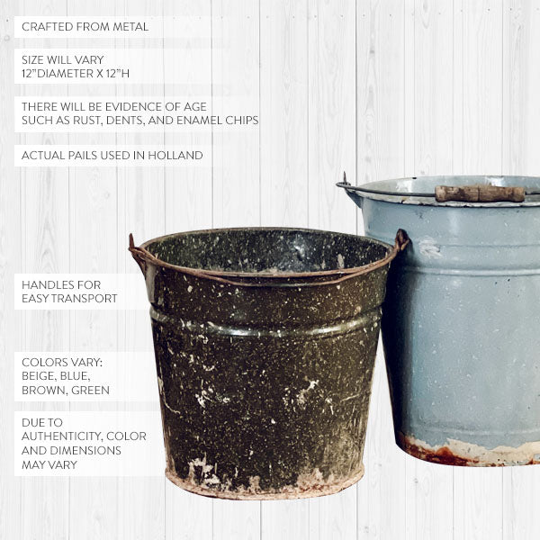 This FOUND Vintage Dutch Pail is what your home is missing!! We can see all your favorite florals and small potted plants in this, styled in your entryway. Fill it with umbrellas even! We can see this styled on your front porch or back porch. This vintage pail is filled with SO many stories and is rich in history! Add this BEAUTIFUL piece to your living room to collect your favorite books and magazines. Fill it with toiletries in your bathroom!