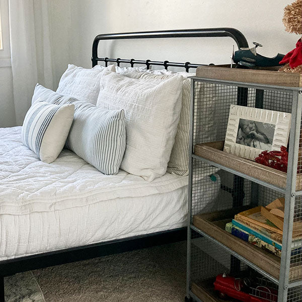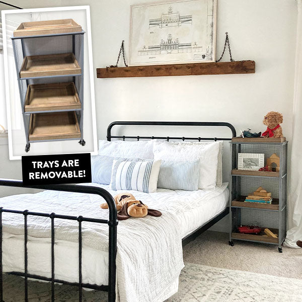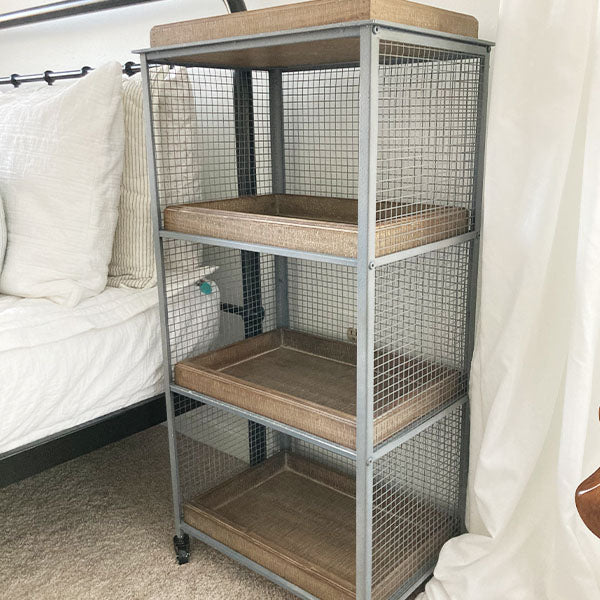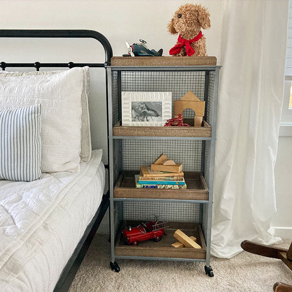 This Four Tier Rolling Cart is PERFECT to hold your linens, extra soaps, hair products and toiletries in your bathroom! Style this cart in your kids’ room to hold their books and toys or even their shoes! Place this in your craft room to hold your supplies for your DIY projects OR place this in your office to hold your notepads, sticky notes, computer chargers and printer paper! Roll this handy cart into your living room to hold magazines, DVDs, books, and remotes. We LOVE the idea of this in your kitchen storing rolled hand towels, spices, and cooking utensils. Get those creative juices flowing and adorn it with faux flowers and greenery! The possibilities go on and on!