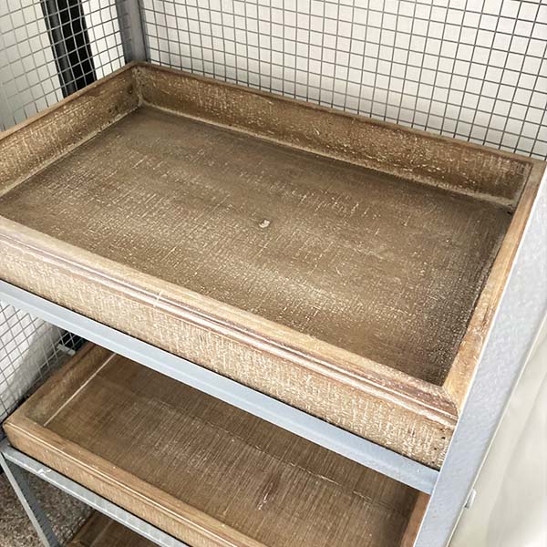 Trays measure: 15" W x 10" D x 2" H, each - Packed: One per package (you will receive one rolling cart)