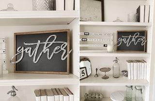 This LARGE " gather sign will look great in your living room breakfast nook TV room or dining room! It's perfect for any space to do exactly what the sign says "GATHER".