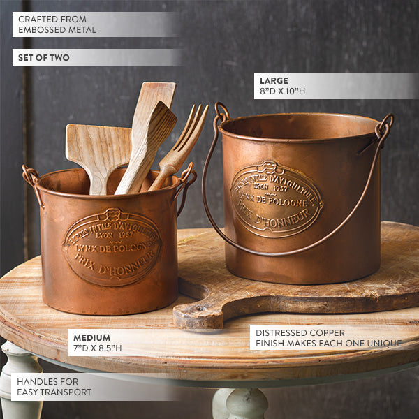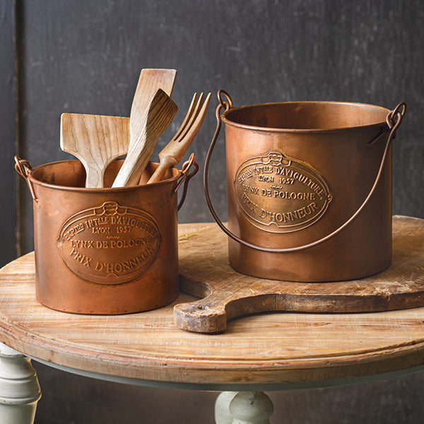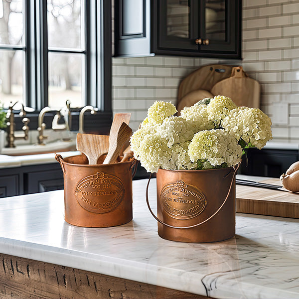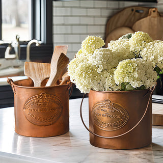 Bring a piece of the French countryside into your home with these French Copper Finish Farming Buckets. Perfect for garden enthusiasts, vintage décor lovers, or anyone looking to add a sophisticated touch to their space. Order yours today and enjoy the blend of rustic charm and elegant design!