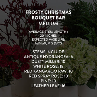 Elevate your holiday season with our inviting DIY Floral Combo, perfect for crafting stunning arrangements. Featuring a curated mix of hydrangeas, dusty miller, roses, and lush greenery, these blooms add a touch of elegance to weddings, parties, or your home. Handpicked for freshness and vibrancy, each flower lets you create standout arrangements with ease.