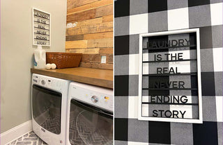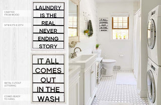 We LOOOVE laundry room signs, so we were really REALLY excited to bring you today's steal! These super FUN laundry signs will cheer up any space and makes folding your clothes more pleasant! Not to mention, the cute sayings will bring a smile to your face and bring CHARM to your laundry space! Just what you were looking for! Not only are the sayings of these fun laundry signs to die for, we also LOVE the contrasting wooden frame with the metal lettering... these will fit into ANY space! We love a steal that transforms a boring chore into a space that you love! Who doesn’t enjoy a fun and charming accent piece.. and for that price... Grab yours NOW! Enjoy! PS - Check out how our friends @ncmodernfarmhousedesign and @pineycreekfarmhouse used hers in the pics above!