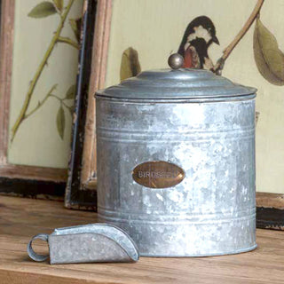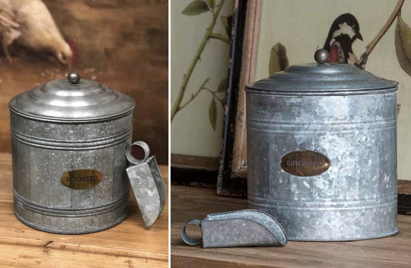 WE ADORE galvanized metal especially when it is used in farmhouse decor!! This beautiful Birdseed Canister is the perfect useful addition to any farmhouse inspired home!