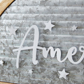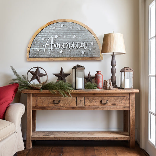 Whether it's Labor Day, Memorial Day, Veterans Day OR just a regular Wednesday we are ALL proud to be Americans! So let's show that Americana Pride all year round with our beautiful Galvanized Metal America Arch Decor!
