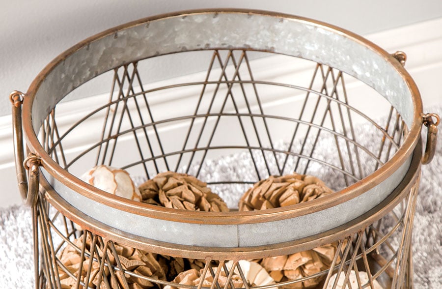 - Beautifully crafted from galvanized metal with gold trim and wood