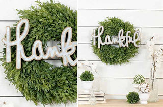 "Thankful" Sign: 15.8" L x 7.3" H x 0.4" Deep