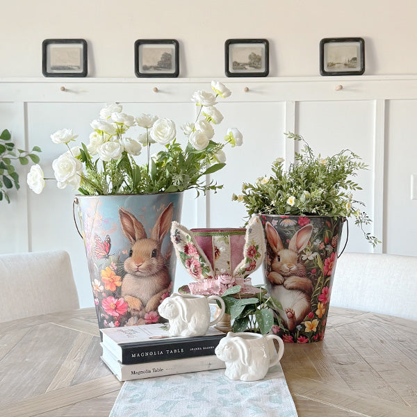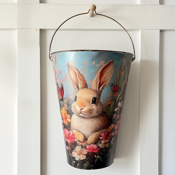 - Charming Bunny Design – Each bucket features a sweet bunny among wildflowers, perfect for seasonal decorating.