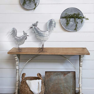 The amazing attention to details on this folk art piece simply astounds us! These aren't just yor ordinary roosters! The cut out details in the galvanized metal really adds the charm that we LOVE! These beautiful pieces will keep you company anywhere in the house or on your porch. Wherever you need a touch of charm and a little conversation starter!
