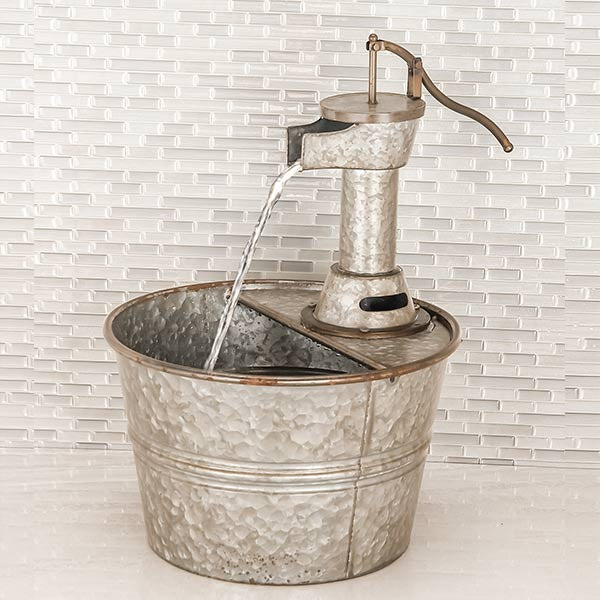 Make way for our absolutely adorable Galvanized Metal Water Pump Fountain!!! Resembling something you would find strolling through a small town flea market; this beauty is beyond perfection and will make the most perfect addition to your cottage farmhouse!