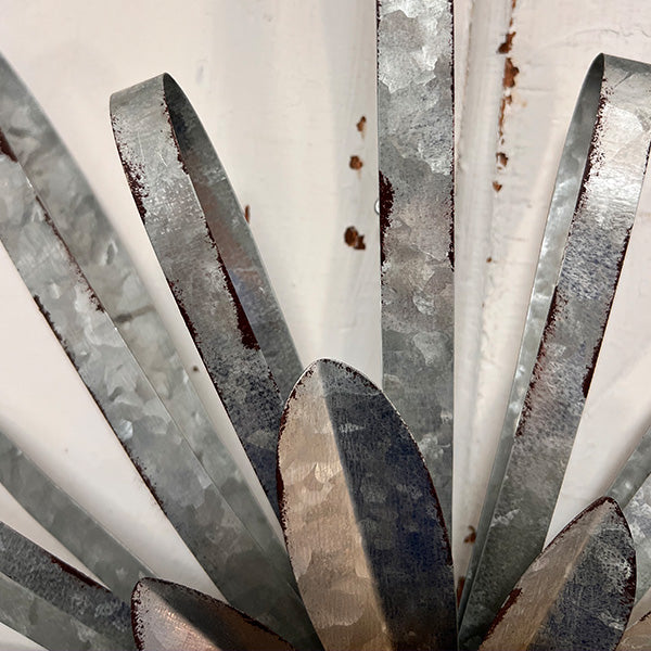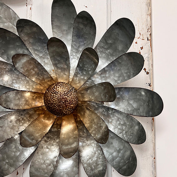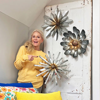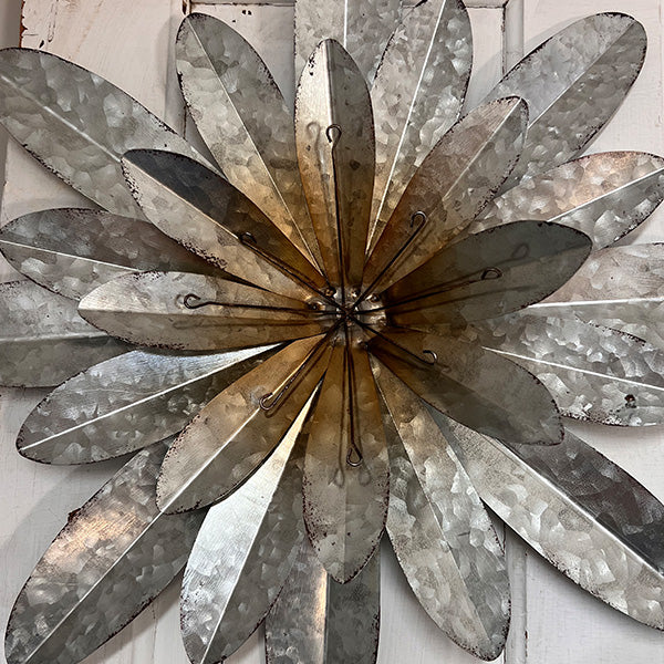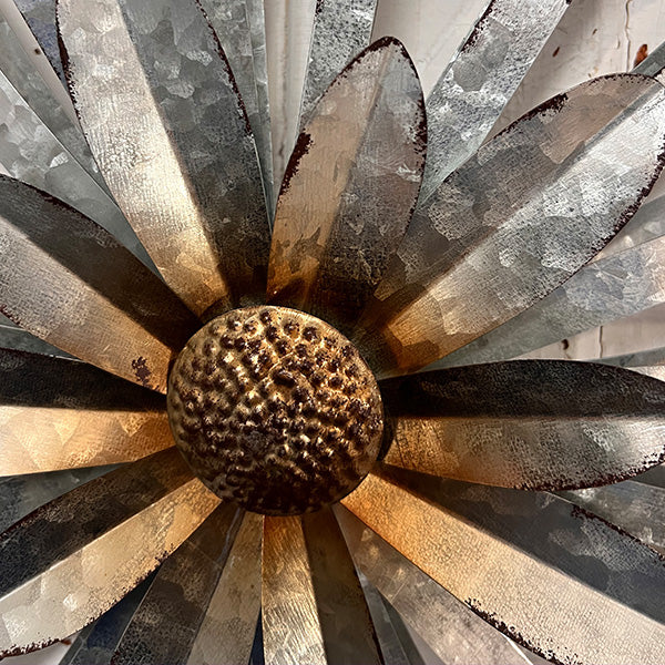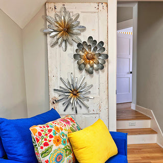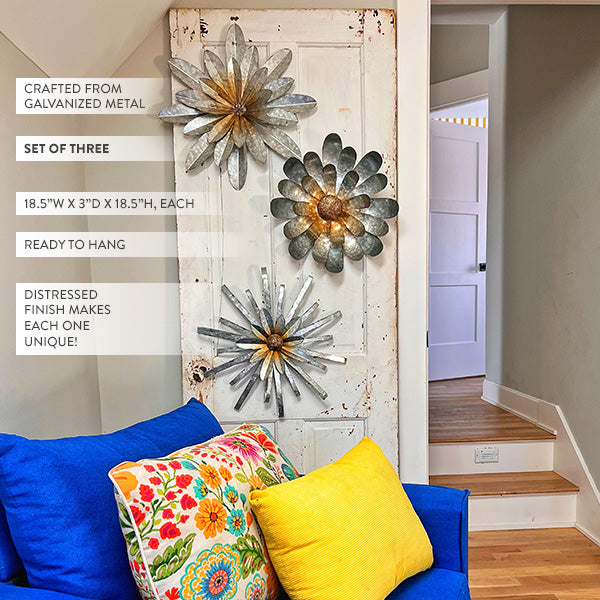 Elevate your wall decor with a touch of rustic elegance with this Galvanized Metallic Flower Wall Art, Set of Three. Featuring three uniquely designed floral pieces, this set brings a dynamic mix of textures, shapes, and artistry to your space. Whether displayed together for a bold statement or spread out for subtle accents, these metallic flowers are the perfect blend of industrial charm and nature-inspired beauty.