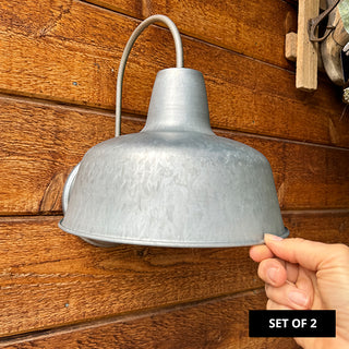 Illuminate your outdoor space with our Galvanized Outdoor Sconce, Set of 2, featuring a sleek, weather-resistant finish that adds industrial charm and durability. These sconces provide warm and inviting lighting, perfect for enhancing the ambiance of your porch, patio, or garden.