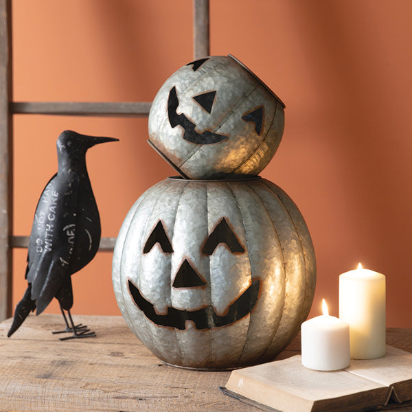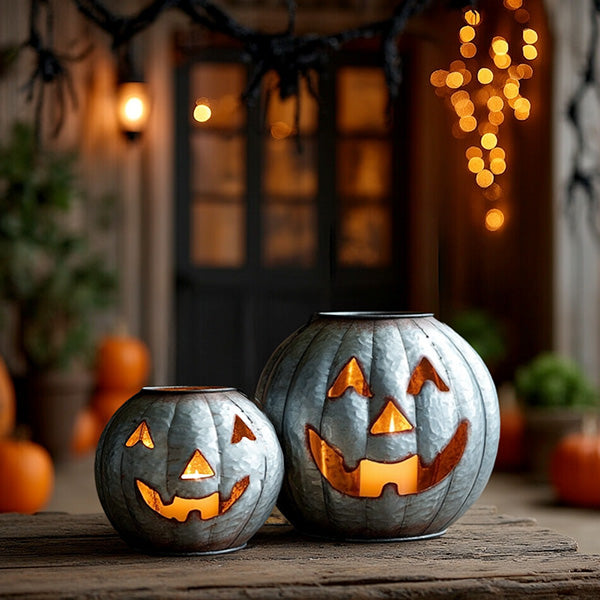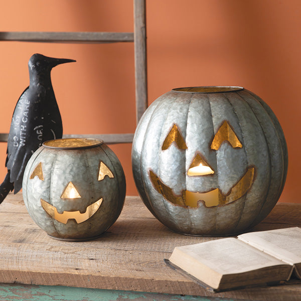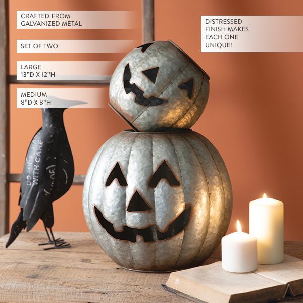 HOT Ghoul Summer is in Full Effect, let's get ready to GLOW! This NEW Duo just dropped, and it's a SCREAM: Galvanized Pumpkin Luminaries, Set of 2! You are getting a perfectly coordinated pair of these charming galvanized metal jack 'o lanterns, and for a deal you won't believe! This is the kind of spooky decor that sells out every single year, so you have to move fast!