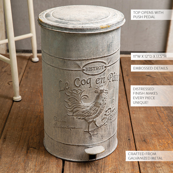Upgrade your waste management system with the Galvanized Rooster Flip Lid Waste Bin and enjoy both style and convenience in one essential piece!