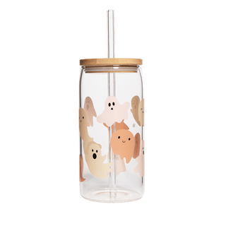 Picture a chilly Halloween evening, with the excitement of trick-or-treaters in the air and the warm glow of jack-o'-lanterns on your porch. Our Ghost Pattern Can Glass is the perfect way to add a touch of cute spookiness to your festivities. Whether you're sipping on a refreshing iced coffee, a seasonal brew, or a festive cocktail, this glass brings a playful spirit to every drink. Featuring a wrap-around design of whimsical ghosts, it's crafted with care to last through many Halloween seasons.