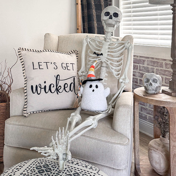 Whether nestled on your sofa, perched on a hallway bench, or brightening up your guest room, this Candy Corn Witch Ghost Pillow with Boo Broom adds seasonal charm with a dash of personality. A must-have piece for cozy Halloween decor!
