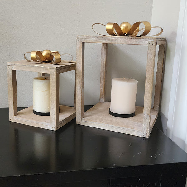 Place these Wooden Gift Box Lanterns on a mantle, side table, or as part of a centerpiece. Add your favorite candles or string lights inside to create a warm and inviting glow, making them a delightful accent for both everyday and special occasions.