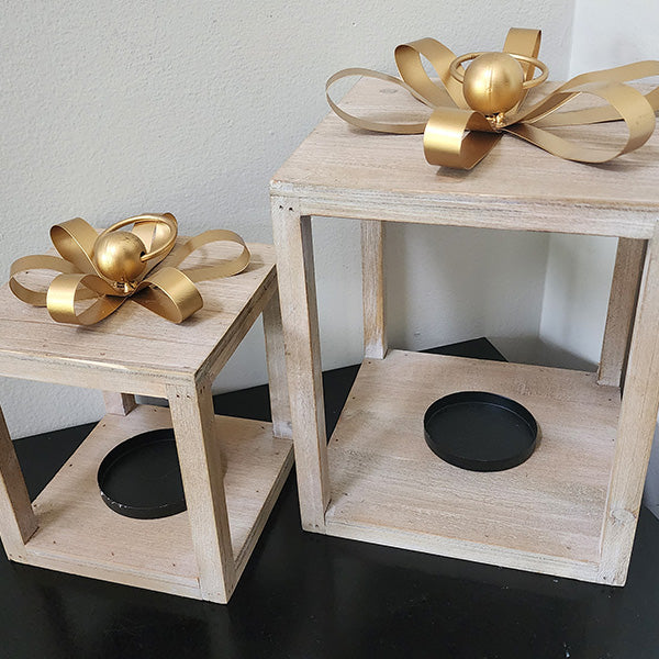 Introducing our Wooden Gift Box Lanterns, Set of 2, a charming and versatile addition to your decor.
