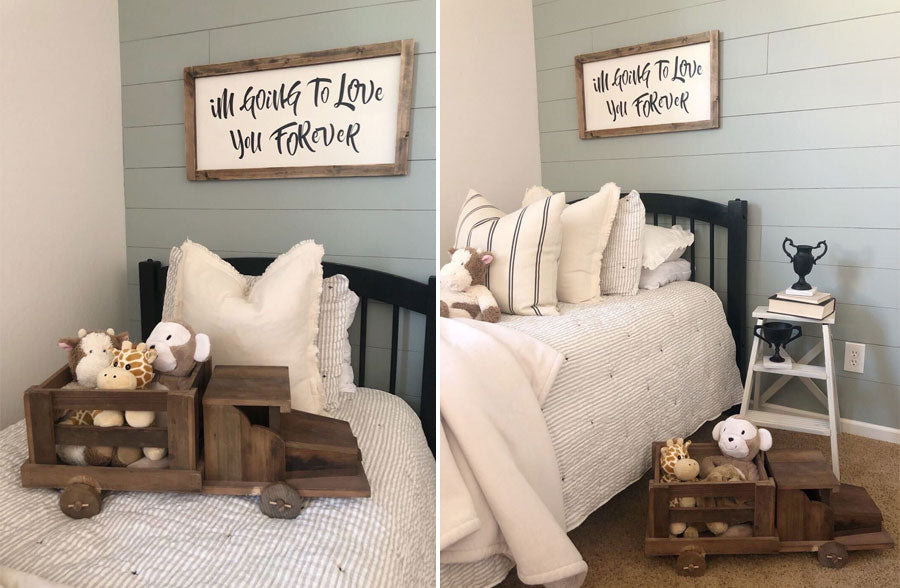 We just love it SO much and could not be happier to bring it your way! Use this wood truck to store rolled up towels and toiletries in the bathroom, ribbons and buttons in your craft room, gardening tools in your outdoor space OR you could use them to stash remote controls in the living room! Seriously it would look AHH-MAZING anywhere!