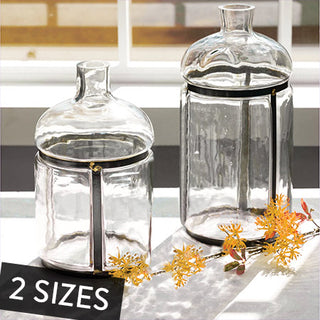The uses for this Glass Bottle with Metal Accents are truly endless! Fill it with fresh or dried flowers (maybe some hydrangea, lavender sprigs, or cotton stems)... OR simply add it to your dining room table for the perfect statement piece. We ABSOLUTELY love the versatility of this gem and just know you will too! <3