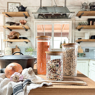 - Airtight & Stackable: Bamboo lids feature a seal to ensure airtight closure, keeping ingredients fresher for longer. These canisters are also stackable, maximizing your storage space efficiently.