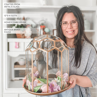 A true conversation starter, this Honeycomb Faceted Glass Cloche Terrarium adds a refined touch to any home. Whether styled on a mantel, bookshelf, or dining table, it’s a statement piece that brings warmth and charm with a modern farmhouse feel.