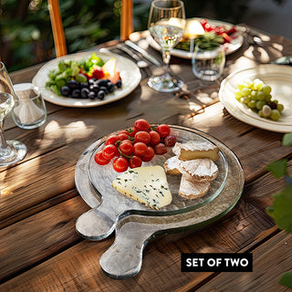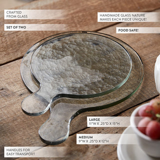 Elevate your kitchen experience with the Handmade Glass Cutting Board Servers. Whether you're preparing a family meal or hosting a dinner party, this set of two cutting boards offers the perfect blend of functionality and elegance for all your culinary endeavors.