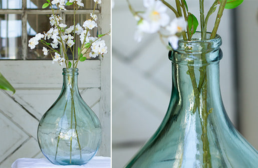 Inspired by bottles collected from restaurants throughout Central Europe used to store wine or sunflower oil, these LARGE tinted glass beauties are sure to be not only eye catching but also versatile and really functional. Bottles just like these beauties have been showing up on some VERY popular decorating shows lately so we just had to get our hands on them!!