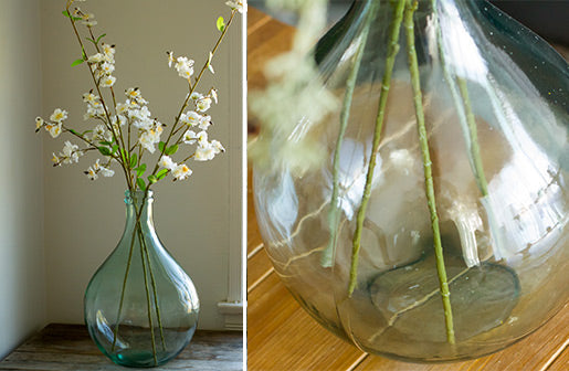 We didn't hesitate for a second when we came across this demijohn reproduction. We just love the LARGE size, texture, color, shape.... Ok, you get the idea! It's just a statement piece all around! The color spectrum on this vase changes subtly with the colors of flowers in the vase and the angles of the sun reflecting off of it.