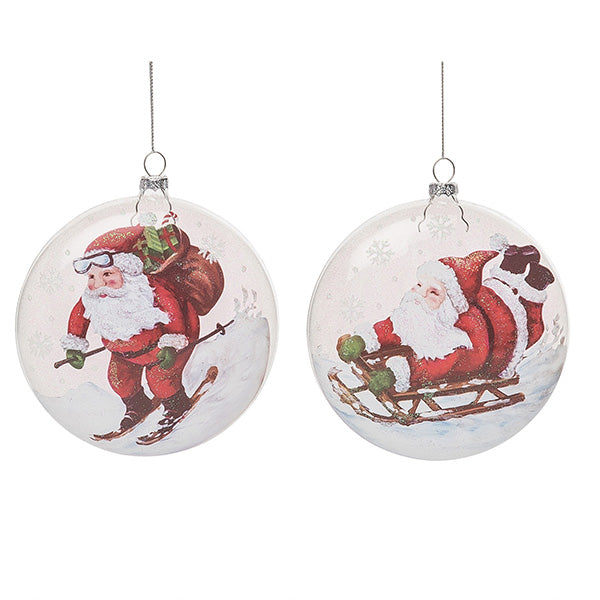 Bring a touch of playful holiday adventure to your tree with this set of 2 Glass Santa Ski Sled Ornaments. These delightful ornaments are a perfect gift for adding whimsical charm and festive fun to any holiday decor!