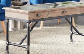 Capture the beauty and chic style of our Industrial Glass Top Coffee Table and fill your farmhouse with vintage appeal and charm. The aged appearance and industrial look of this elegant coffee table make it a strong statement piece for any room in your home.