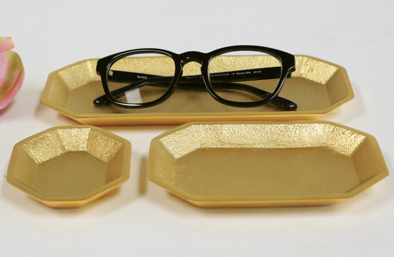 The uses for these trays are truly unlimited! Whether on your dining table or in your china cabinet arrange all three sizes as serving pieces for hors d’oeuvres tea sandwiches cakes or cupcakes. Or create stunning centerpiece using plants candles or ironstone pieces…the list goes on and on! Use them on your coffee table as a jewelry holder in your bathroom or even in the office to hold your prized pens. They can even be the perfect spot to throw your keys or gather mail. Even your cosmetic bottles will live in style perched on one of these babies! Or maybe hang all three on the wall as a new take on wall art!