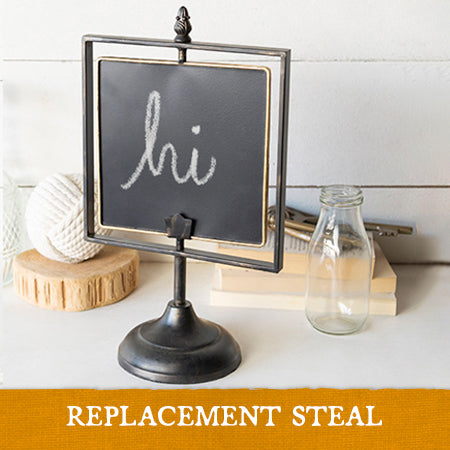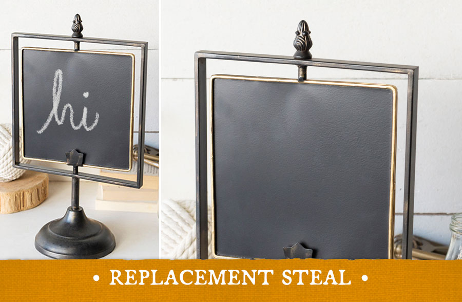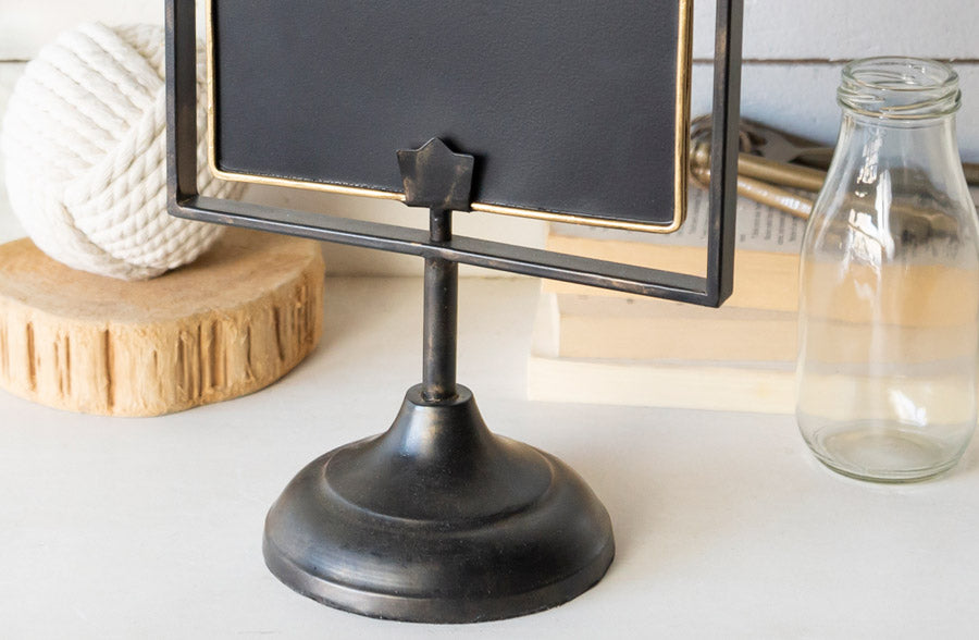 Add style to your décor while offering function to your home with our Metal Framed Standing Chalkboard. This chalkboard stand beautifully frames your reminders, notes and inspirational quotes with character and vintage charm.