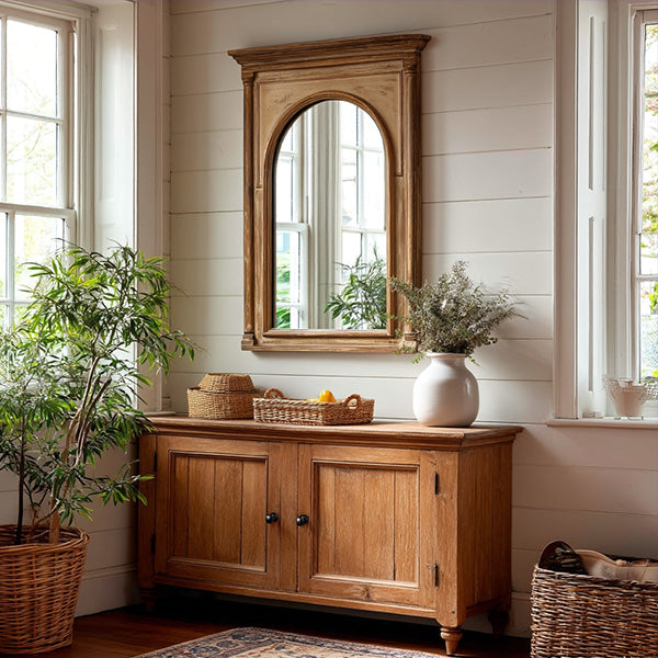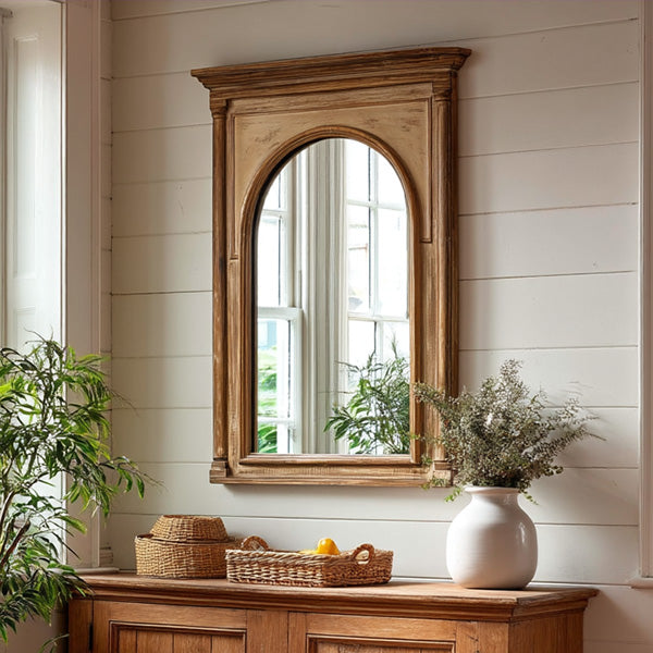 This isn’t just a mirror; it’s a statement of quiet luxury. The elegant, arched top gives it a grand, architectural feel, while the beautifully distressed wood frame adds that touch of rustic-chic warmth we all crave. It’s the perfect blend of European elegance and cozy farmhouse charm, making it a truly timeless piece that will elevate any room in your home.