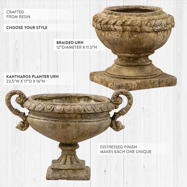 Introducing our exquisite Ancient Greece Inspired Planter Urns, where elegance meets functionality, available in two timeless styles: Braided and Kantharos. Crafted with meticulous attention to detail, these planter urns effortlessly blend classical aesthetics with modern versatility.